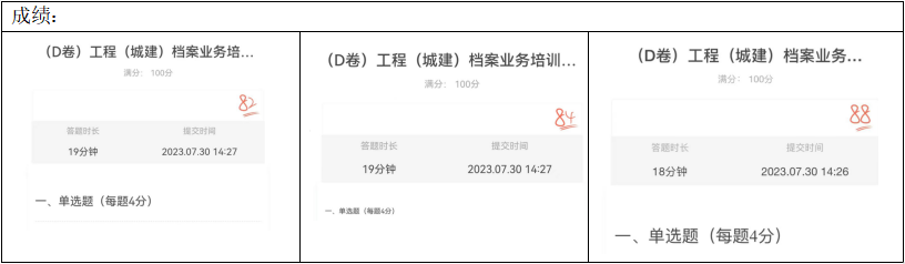我司有4名同事參加此次工程檔案培訓,完成了6門課程的學習(包括工程檔案法律法規、工程文件的形成與整理、工程檔案的分類等),并參加了檔案培訓證考試,其中有3人高分通過工程檔案培訓考試。