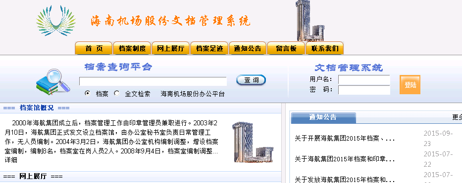 海航集團(tuán)檔案系統(tǒng)主要用于電子檔案的管理,包括文件管理,檔案管理,資料管理、全文檢索。