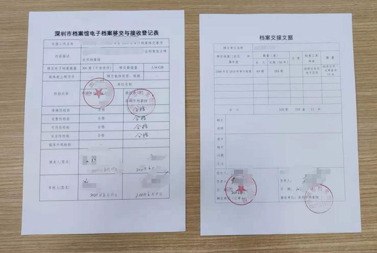審計局此次移交的檔案為:2006年至2010年審計檔案。移交電子檔案數量為306卷,移交數據量為3.54G,紙質目錄一式兩套共10本。