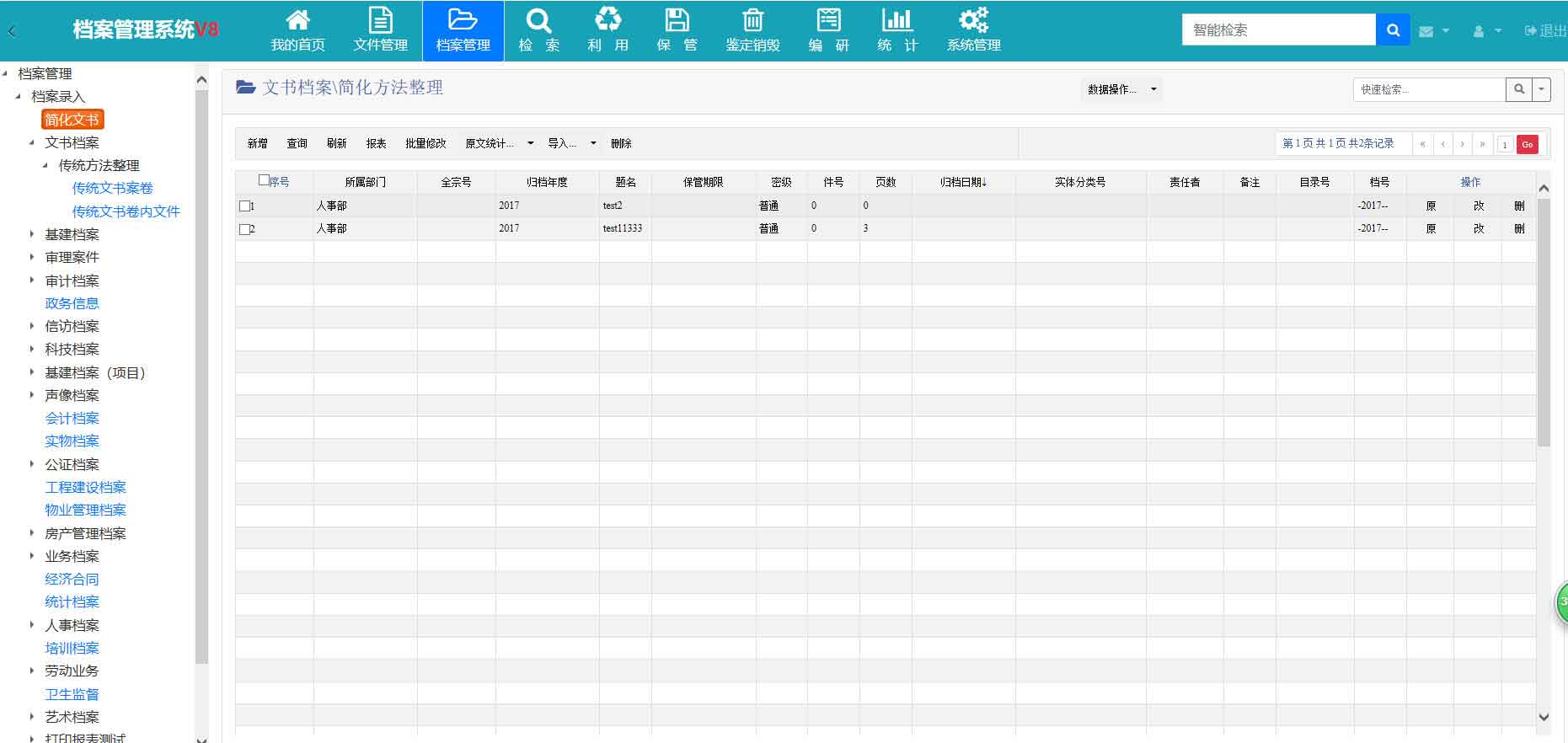 從功能上分,系統主要包括以下模塊:文件管理、檔案管理、資料管理、檢索、利用、保管、鑒定銷毀、統計、檔案移交、檔案編研、系統維護等功能模塊。